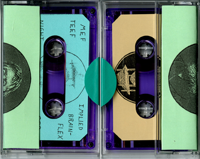 NP009 Mef Teef - Implied Brain-Flex C20 $NO LONGER AVAILABLE Debut transmission from this Iowa City based Free Music group. Rolling piano lines and crisp rhythmic drumming hold the backdrop for trumpet and saxophone spazz and howl. Before you know it everything breaks down into mush before instantly reforming into perfect hard-bop catchiness, swing cheesiness, or carnivalesque creepiness� but only for a measure� and then who knows what comes next. |
