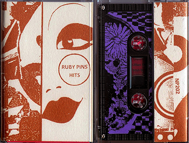 NP202 Ruby Pins/HITS "Split" C36 Ruby Pins/HITS is a split cassette release of former Grass Widow drummer Lillian Marrings solo and now primary outlet Ruby Pins and Ruby Pins sometimes contributor and friend Jennifer Weisbergs solo project HITS. This release finds Ruby Pins stepping forward with a great deal of space in the song writing. These often drum lite songs strum away into intricate structures blending with vocal passages to create a release that is quite different from prior Ruby Pins outings that had a bit more in common with the upbeat rock oriented post punk jangle of Grass Widow. Perhaps recent time spent in the Pacific Northwest have flavored Ruby Pins to be a bit more loner and dreamy sounding. Variety and change are good things and this is great material regardless that fits in nicely with Lillians prior musical output. Hits mirrors and aesthetically sits with Ruby Pins well riding a similar mid paced riff oriented lite on the drumming approach that focuses much attention to atmosphere and the intricacies of minimalist dreamy post punk pop. HITS incorporates interesting keyboard arrangements as well helping to highlight the distinct intimate weirdo pop vibes of the sound. Underneath the Nile and Wavy Lace are really great standout tunes that have been very enjoyable repeat listens